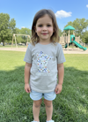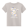 This soft beige toddler tee captures the warmth of summer days in Minnesota — where wildflowers bloom and bees buzz happily in the sunshine. Featuring a hand-drawn outline of Minnesota filled with bees and blooms, this sweet shirt celebrates your little one’s love for home and nature.